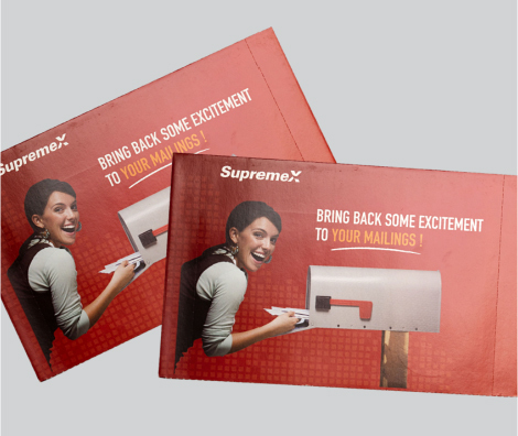 Innovantes, à la fine pointe de la technologie et respectueuses de l'environnement, les solutions d'impression et de finition des enveloppes et des emballages de SupremeX comprennent le gaufrage, le dégaufrage, le pelliculage, le fenêtrage et bien d'autres techniques de finition. COMBINEZ-LES et les possibilités sont pratiquement infinies. Faites-nous confiance pour que vos enveloppes et vos emballages personnalisés se démarquent du lot !